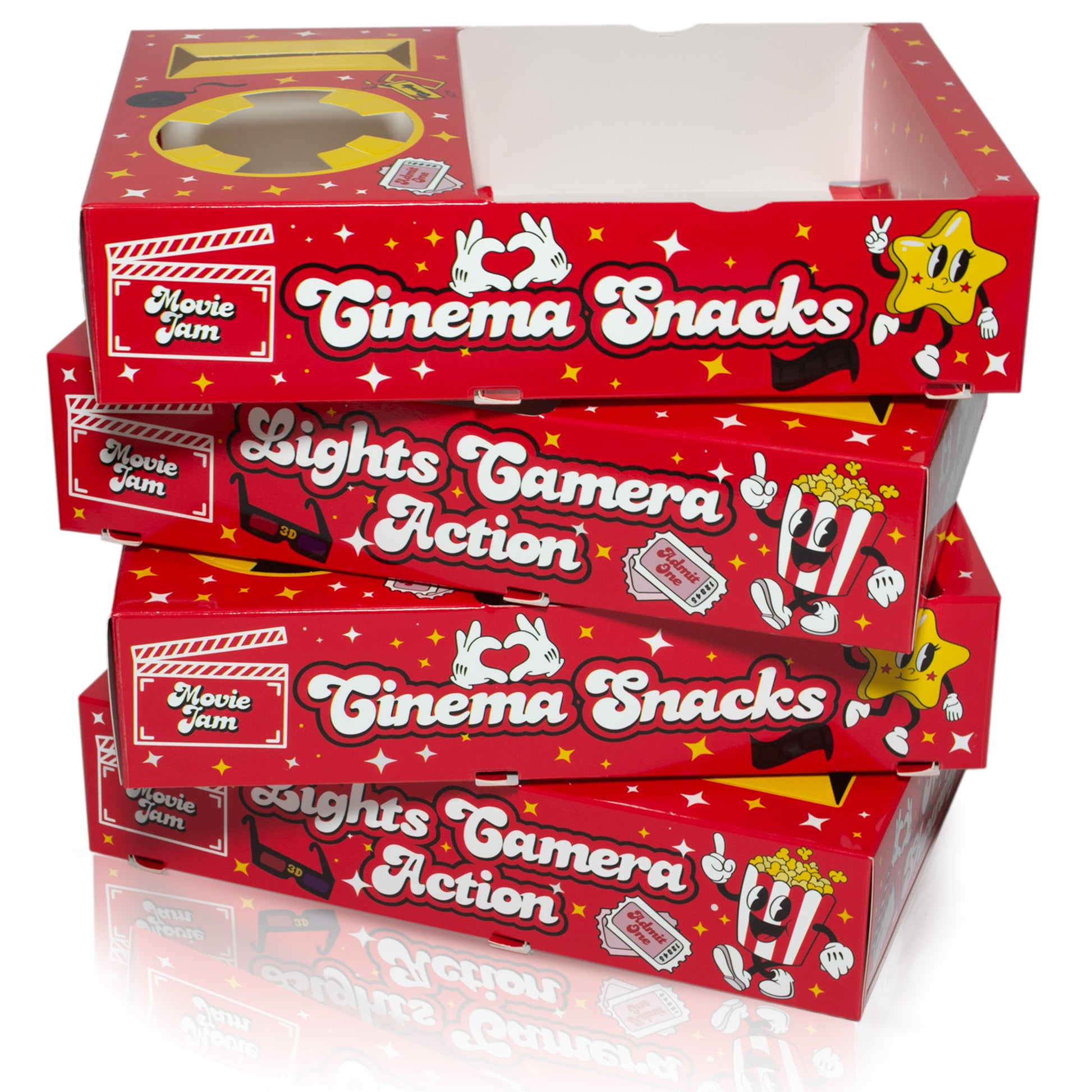 Bring the cinema home with our colourful Moviejam snack tray set – each kit includes 10 sturdy cardboard popcorn boxes, 10 candy bags and themed movie-ticket invitations for the full cinema-at-home vibe. Perfect for family nights, kids’ sleepovers, cosy date nights or parties, these strong, mess-free trays hold popcorn, sweets or nachos without collapsing and double as fun movie-night décor. They’re a crowd-pleaser for birthdays, Christmas, Halloween or any movie-night hamper gift.